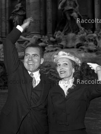 Descrizione: Fontana di Trevi. Il futuro Presidente USA Richard Nixon e la moglie Patricia in visita a Roma Anno: 20 marzo 1957 Fontografo: (?) Fonte: ANSA Aggiunta da Loredana Diana