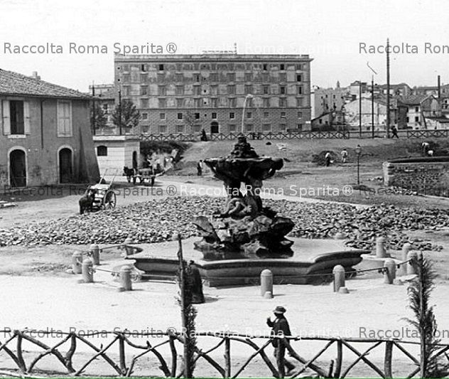 foto bellissima e interessante, la fontana dei Tritoni. il palazzo che si vede in fondo è sulla riva opposta del Tevere. ma se la foto è fatta in “direzione fiume”, dove è il tempio di Ercole Vincitore? era stato spostato?
