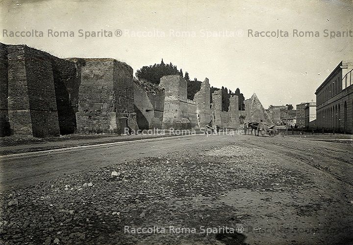 Descrizione: Mura Aureliane e Piramide Cestia, attuale Viale del Campo Boario Anno: 1890 ca Fotografo:(?) Fonte: archivio sconosciuto Aggiunta da Loredana Diana