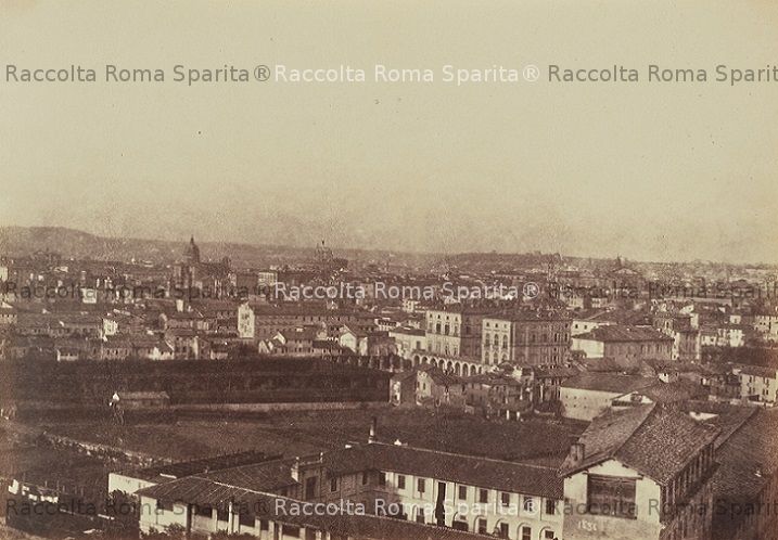 Descrizione: Panorama dalla terrazza di Via Garibaldi, davanti alla Mostra dell’Acqua Paola (er Fontanone) Anno. 1856/59 Fotografo: Jane St. John Fonte: Getty Images Aggiunta da Loredana Diana