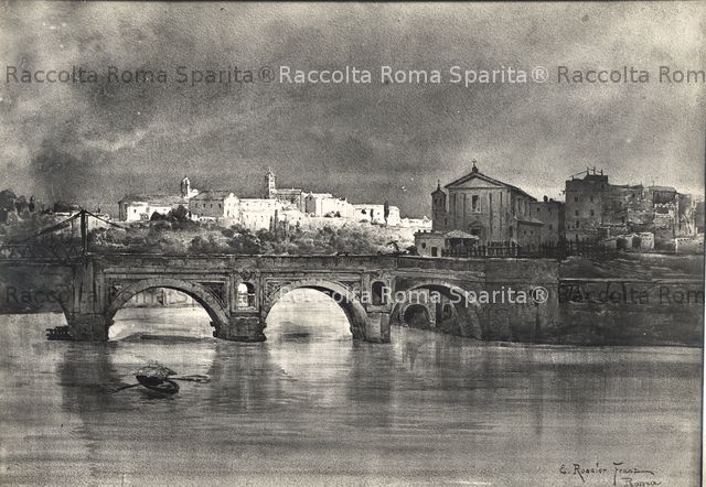 Descrizione: Ponte Rotto, o Senatorio, da ponente, sullo sfondo il Monte Aventino Anno: 1878/81 Autore: Ettore Roesler Franz Aggiunta da Loredana Diana