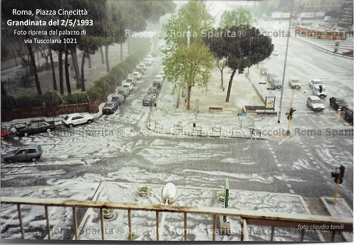 Piazza di Cinecittà Descrizione: Grandinata in Piazza di Cinecittà Anno: 2 maggio 1993 Fotografo: Claudio Tondi Fonte: archivio di famiglia Aggiunta da Claudio Tondi