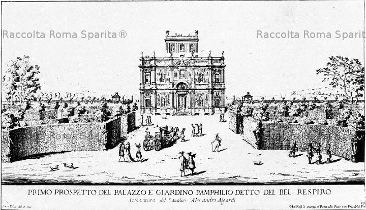 Casino del Bel Respiro Descrizione: Primo prospetto del Casino del Bel Respiro, Villa Pamphili Anno: (?) Autore: Giovanni Battista Falda Aggiunta da Mario Visconti