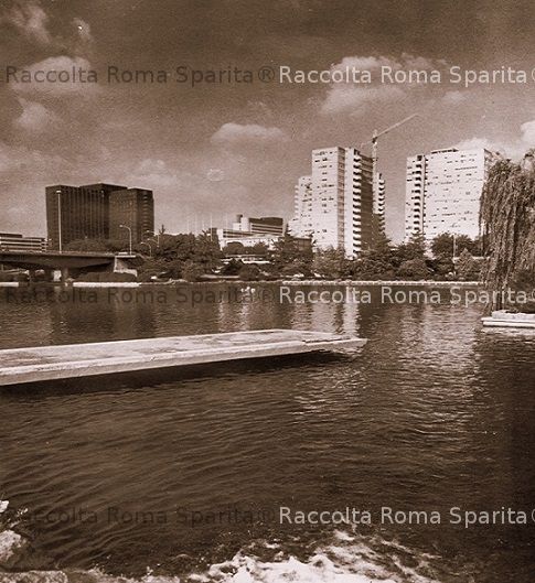 Descrizione: Lago dell’EUR con la passeggiata del Giappone e i grattacieli sullo sfondo. La passeggiata del Giappone parte da viale Umberto Tupini e torna sul viale Tupini. Il viale costeggia la sponda del lago artificiale dell’EUR, lungo il quale sono piantati i mille ciliegi donato dalla città di Tokio alla città di Roma e questo spiega il toponimo. Il lago è alimentato dalle sorgenti della Cecchignola attraverso tre grandi bacini che si susseguono parallelamente a viale America; il lago è lungo 1 chilometro e largo al massimo 130 metri