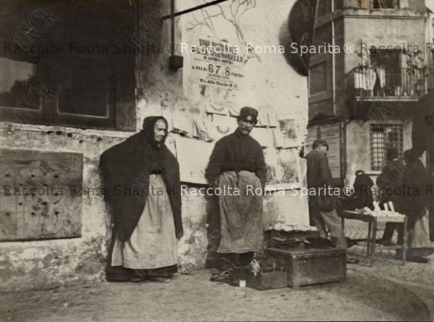 Descrizione: Ciabattini con vendita del giornale “L’Asino”(rivista satirica) in Piazza Navona angolo Via Agonale, dove da oltre settant’anni c’e’ la Clinica della bambola