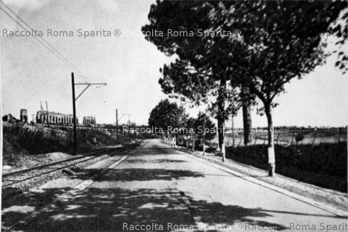 Descrizione: Vista di Via Appia nuova nel tratto che costeggia l’attuale Parco degli Acquedotti Anno: 1933 Fotografo: (?) Fonte: Volume “Roma nel Decennale” a cura dell’ENIT e delle Ferrovie dello Stato Aggiunta da Nicola Capece