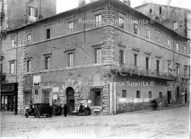 Descrizione: Palazzo Alicorni nella sua sede originale, all’angolo tra Piazza Rusticucci e San Pietro, prima del restauro del 1928. Demolito nel 1931, dopo la firma dei Patti Lateranensi e la definizione del confine tra lo Stato italiano e il Vaticano, fu ricostruito nel 1938 lungo Borgo Santo Spirito (architetti Attilio Spaccarelli e Marcello Piacentini)