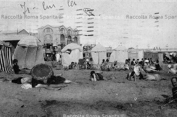 Descrizione: Ostia, Stabilimento Roma, vista della spiaggia, (con scritta particolare) Anno: 1930 Fotografo: (?) Fonte: Tratta da delcampe archivio sconosciuto Aggiunta da Remia Marcello