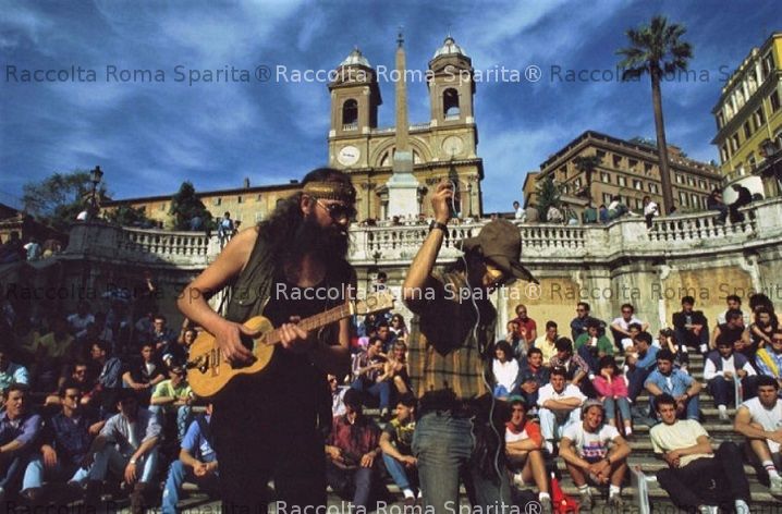 Descrizione: Piazza di Spagna, artisti di strada e folla seduta sulla scalea. Anno: 1987 Fotografo: Ferdinando Scianna Fonte: Magnum Photos HNC Aggiunta da Remia Marcello