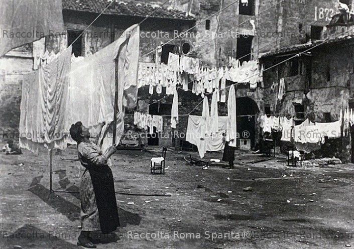 Descrizione: Roma. Si stende il bucato nel cortile di casa Anno: 1890 Fotografo: agenzia Farabola Fonte: Tratta da ebay archivio sconosciuto Aggiunta da Marcello Remia