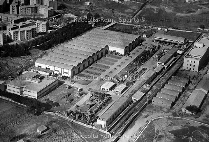 Descrizione: Fabbrica Fiorentini tra via Tiburtina e l’attuale via Filippo Fiorentini; in alto a sinistra il complesso di edifici dell’Ina Casa Tiburtino Anno: anni ’60 ca Fotografo: (?) Fonte: archivio sconosciuto Aggiunta da Lucia Prandi