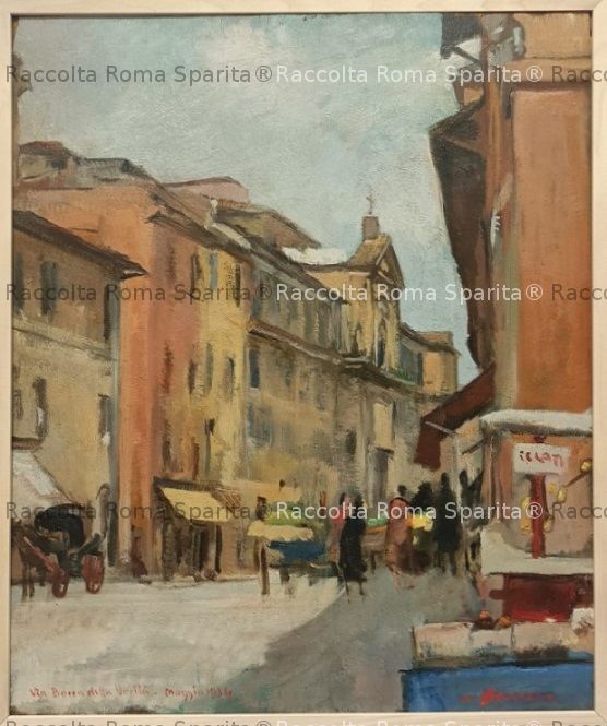 Via Bocca della Verità Descrizione: Via Bocca della Verità Anno: 1934 Autore: Antonio Barrera Fonte: Esposto al Museo di Roma in Trastevere Aggiunta da Lucia Prandi
