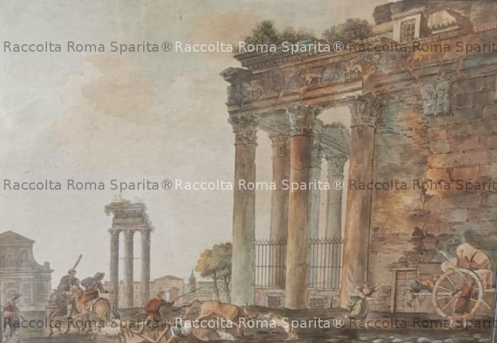 Descrizione: Foro Romano: Fiancata del Tempio di Antonino e Faustina, colonne del Tempio dei Dioscuri, e in fondo Santa Maria Liberatrice Anno: XIX secolo Autore: (?) Fonte: mostra “Lo sguardo del tempo” al tempio di Romolo, dicembre 2023 Aggiunta da Lucia Prandi