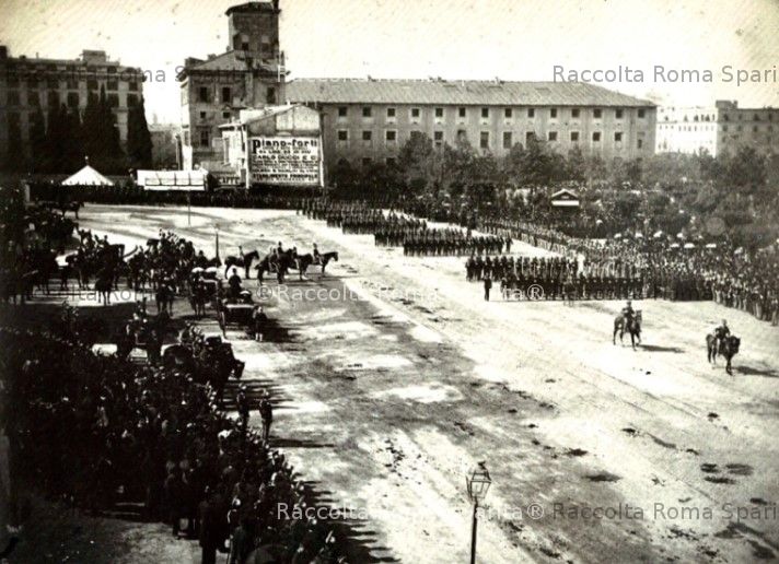 Descrizione: Sfilata del presidio militare a Termini in onore dell’Imperatore di Germania, Guglielmo II, giunto a ROMA in visita ufficiale l’11 Ottobre 1888