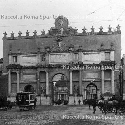 Descrizione: Porta del Popolo vista dall’attuale Piazzale Flaminio Anno: 1910 ca Fotografo: G. Massiot & cie Fonte: University of Notre Dame Aggiunta da Nicola Capece