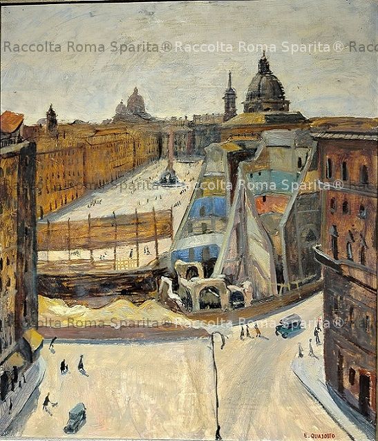 Descrizione: Demolizioni a Piazza Navona, olio su compensato, esposto al Casino dei Principi di villa Torlonia in occasione della Mostra Artiste a Roma Anno: 1933 Autore: Eva Quajotto Fonte: foto fatta all’originale Aggiunta da Lucia Prandi