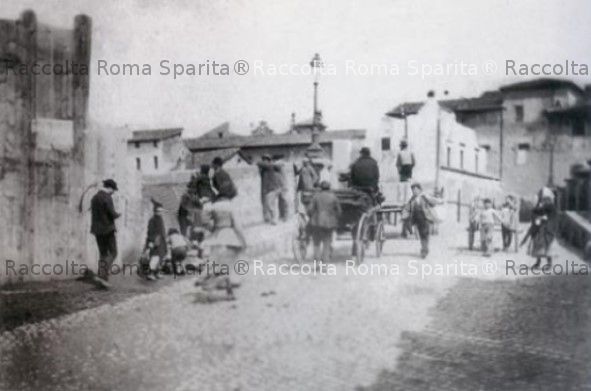Descrizione: Ponte Rotto. Passaggio di carrozze e pedoni prima della demolizione Anno: 1887 ca Fotografo: Ettore Roesler Franz Fonte: archivio sconosciuto Aggiunta da Loredana Diana