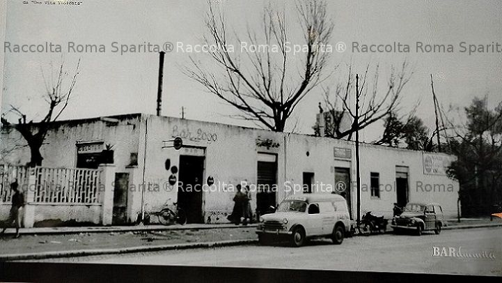 Il bar Duemila, tutt’oggi esistente su via Tiburtina all’altezza della fermata metro Santa Maria del Soccorso, in una foto storica tratta dal film “Una vita violenta”. Il bar è citato nei romanzi di Pasolini