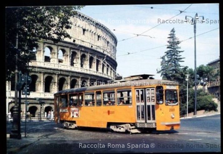 Descrizione: Tram Atac motrice 2001 presso il Colosseo. Ricostruita e dotata di una cassa di linea più moderna e squadrata, riverniciata in arancione seguendo le nuove normative per il trasporto pubblico urbano. Anno di costruzione 1930