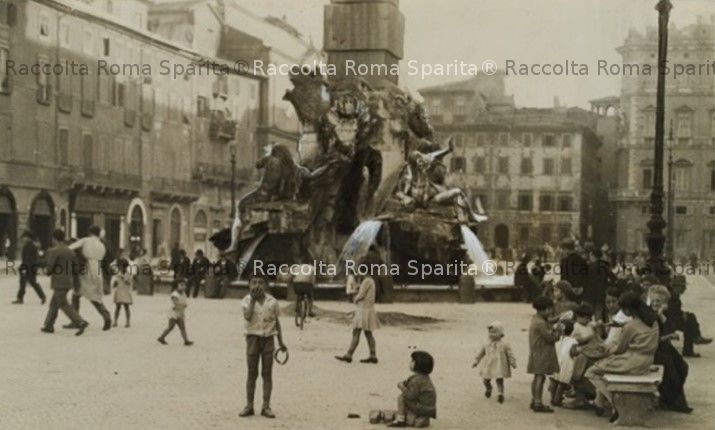 Descrizione: Piazza Navona. Bambini giocano nei pressi della Fontana dei Quattro Fiumi Anno: anni ’30 Fotografo: (?) Fonte: archivio sconosciuto Aggiunta da Marcello Remia