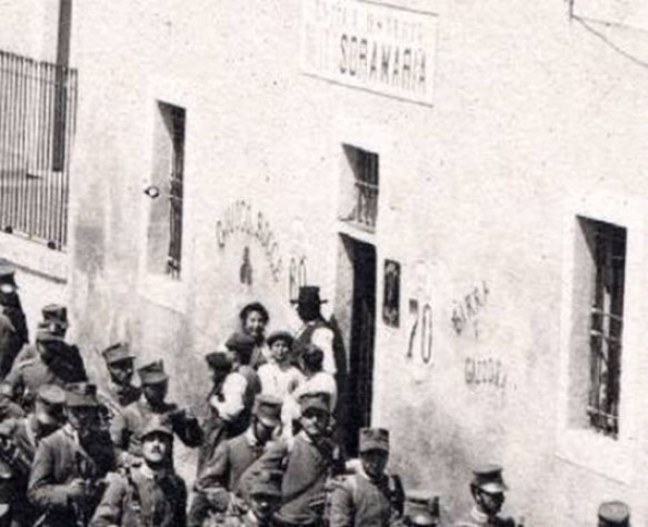 Centocelle Descrizione: Centocelle, Operazioni miitari presso un’osteria, si legge l’insegna “Sora Maria” Anno: 1910 Fotografo: (?) Fonte: archivio sconosciuto Aggiunta da Marcello Remia