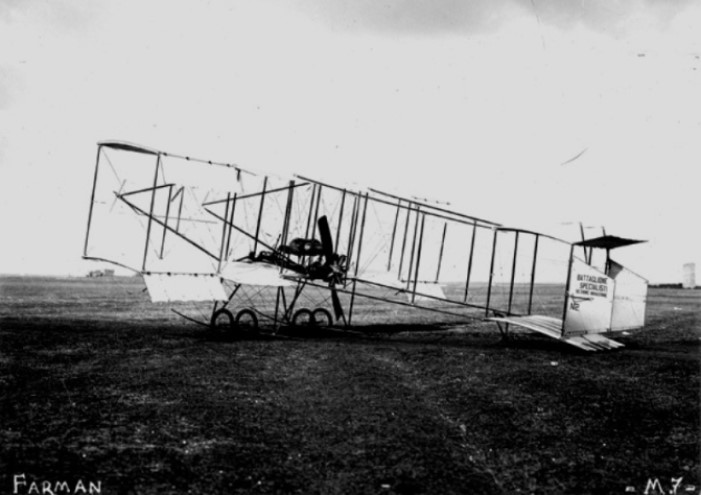 Descrizione: Aeroporto Centocelle. biplano Farman III, noto anche come biplano Henry Farman, in Italia Wilbur, in un prato di Centocelle, insegnò l’arte del volo al sottotenente di vascello Mario Calderara, trasformandolo nel primo pilota d’areo del nostro paese.