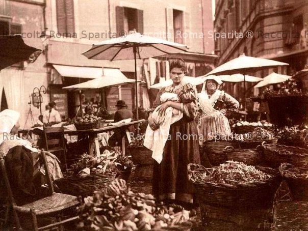 Campo de’ Fiori Descrizione: Mercato di Campo de’ fiori Anno: 1890 ca Fotografo: (?) Fonte: archivio sconosciuto Aggiunta da Dino di Carlo