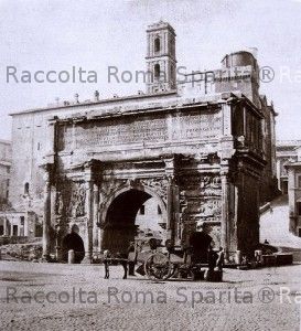 Descrizione: Arco di Settimio Severo, prima degli scavi che lo riportassero interamente alla luce Anno: (?) Fotografo: (?) Fonte: aechivio sconosciuto Aggiunta da Roma Sparita