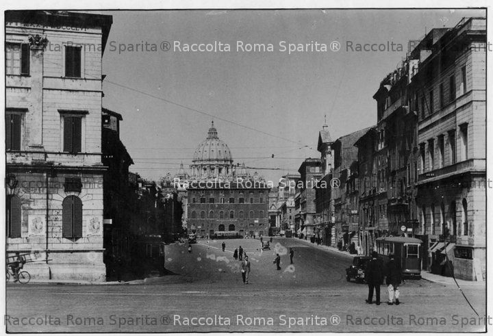 Descrizione: Via della Conciliazione. Ultimi mesi di vita per il bramantesco Palazzo dei Convertendi, gemma del primissimo Cinquecento romano. Anno: 1937 ca Fotografo: (?) Fonte: Archivio Storico Capitolino Aggiunta da Giorgio Pasetto