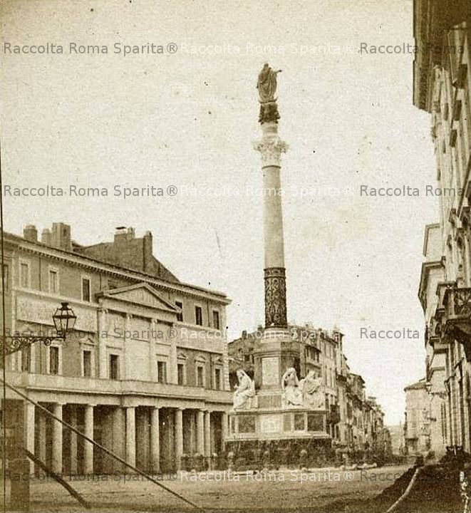 Notare il palazzo dell’ambasciata di Spagna con l’apparato posticcio costruito per l’inaugurazione del monumento all’Immacolata.