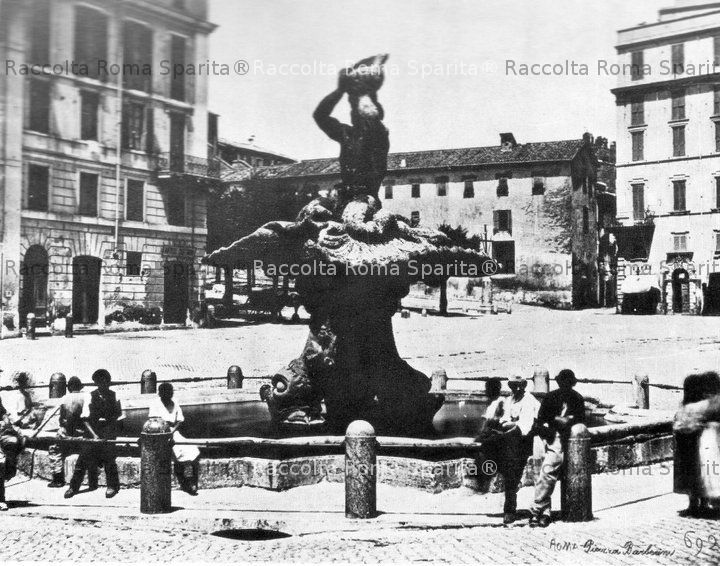 Descrizione: Piazza Barberini prima dell’apertura di Via Veneto. Fontana del Tritone Anno: Ante 1896 Fotografo: (?) Fonte: Guide rionali di Roma ,edito dai f.lli Palombi nel 1980. Aggiunta da Mario ELIA