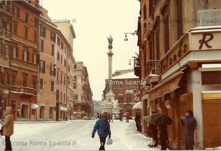 Descrizione: Piazza di Spagna incrocio via dei Condotti, nevicata del 1985 Anno: 6 gennaio 1985 Fotografo: (?) Fonte: Archivio personale dell’inseritore Aggiunta da Gaetano Trovalusci