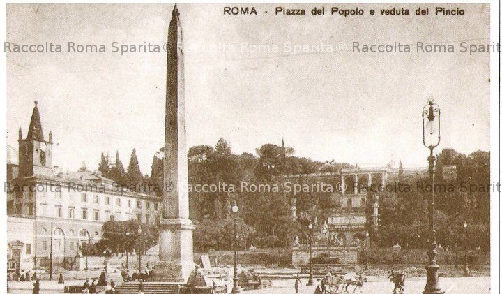 Descrizione: Piazza del Popolo vista dal Pincio Anno: Inizi ‘900 Fotografo: (?) Fonte: Da “Roma eterna e cittadina”, di Alberto Manodori Aggiunta da Giorgio Palumbo