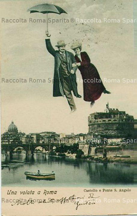 Descrizione: Curiosa cartolina, con vista sul Tevere, con Castel Sant’Angelo, e San Pietro, “Una Volata a Roma” Anno: 1905 Fotografo: (?) Fonte: Tratta da ebay – cartolineantiche Aggiunta da Remia Marcello