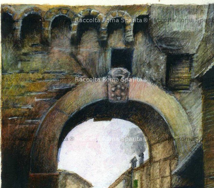 Descrizione: Vicolo delle palline (particolare) ( interpretazione-omaggio all’artista Ettore Roesler Franz) Anno: 2010 Autore: Giovanni Guido Tecnica: Acquerello Aggiunta da Giovanni Artista