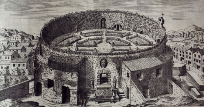 Immagine: Mausoleo di Augusto con i giardini all’italiana. Dupérac – 1575