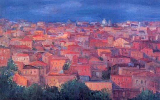 Dipinto: i tetti di Roma di Mario Mafai 1948