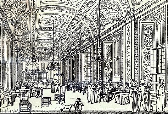 L’ufficiale comandante disse al proprietario che non potendosi in quel locale avere né caffè, né birra e neppure l’acqua, era inutile mantenerlo come locale pubblico ed era quindi meglio trasformarlo in caserma. Il Caffè Nuovo fu chiuso e riaperto qualche tempo dopo come bettolino per le truppe di occupazione, col nuovo nome di Café Militaire Francais. Durò così per tutta la dominazione francese, quindi riprese il suo nome ed infine, dopo il 20 settembre, si chiamò Caffè d’Italia. Ormai però era cominciata la decadenza ed i proprietari lo abbandonarono: i locali furono occupati dalla succursale della Banca Nazionale. Oggi il ricordo del Caffè Nuovo gode di un eccezionale privilegio: la bandiera tricolore che era issata all’ingresso del locale, fu rimossa dai francesi nel loro primo ingresso in Roma e figura agli Invalides fra le numerose altre bandiere, come se fosse un trofeo di guerra