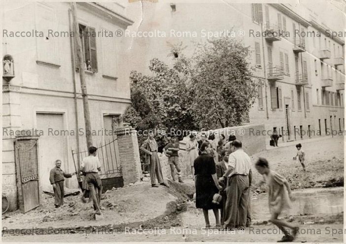 19 luglio del 1943, durante il bombardamento di Roma un bombardiere per tentare di neutralizzare una postazione antiaerea sulla via Appia sganciò una bomba che finì a pochi metri dalla palazzina (angolo Via Camilla-Via del Pastore Faustolo) dove abitava mio nonno (nell’immagine appoggiato al cancello) e nonna con i due figli più piccoli. La fortuna volle che cadde in una zona fangosa ed esplose scaricando la sua forza distruttrice verso l’alto. L’unico danno fu al cancello del villino. L’evento “miracoloso” fu attribuito all’immagine del Sacro Cuore visibile incastonato sullo spigolo. A quanto mi fu raccontato la statuina rimase decapitata da una scheggia. Demolito il villino la statua restaurata ha trovato la medesima collocazione nel nuovo fabbricato costruito in loco e dove ho passato la mia infanzia e giovinezza
