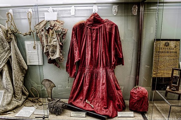 Nella foto il mantello e gli “arnesi del mestiere” di Mastro Titta, una volta conservati al Museo Criminologico, oramai chiuso da anni