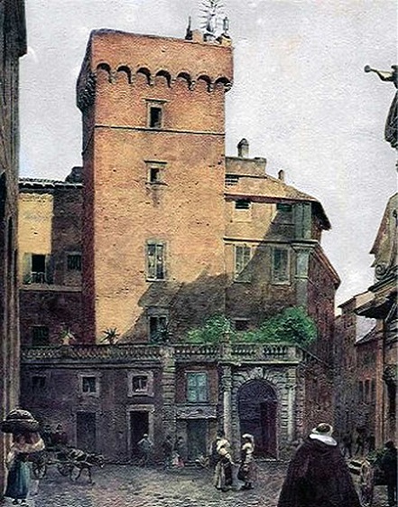 “‘Sto palazzo sta a vyia de S. Antonino de Portoghesi: si cee fate caso, la notte su in cima a la torre der palazzo, ce sta ssernpre acceso u’ llume davanti a ‘na Madonna. Mo’ vve dico er perchè.