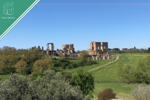 Proseguendo la passeggiata attraverso quello che forse era un ampio ippodromo, si giunge fino all’Appia Antica, su cui si apriva l’originale ingresso della villa, a semicerchio, costituito da una grande fontana monumentale (ninfeo), nei secoli successivi trasformata in una stazione di posta per il cambio dei cavalli con servizio di lavanderia. Il pianoro della villa è caratterizzato qua e là dalla presenza di ampie cisterne, che raccoglievano l’acqua portata nell’area da una diramazione dell’acquedotto principale, le cui arcate sono ancora visibili.